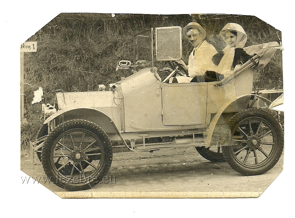 Je suis debout sur le marchepied de l'Opel, haut- de- forme et badine en 1963 (+ mes 18 ans)