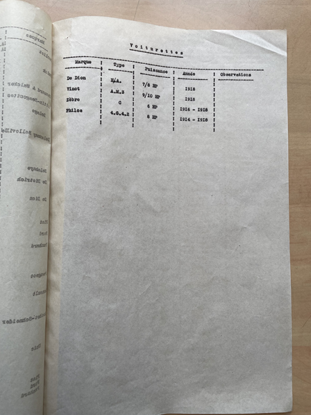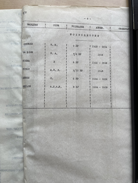 D'après les numéros matricules, on peut emmetre l'hypothese que les Type C coupe-vent viennent de la réquisition ou alors des premières commandes de l'armée (les matricules 51562, 51834 sont de 1915, fin des réquisitions importantes mais l'armée a pu commander dès ce moment des C standard du marché en coupe-vent), le Type C non coupe-vent (185328 qui date de 1916 ou 1917) à peu près à coup sûr de commandes de l'armée qui économise en faisant simplifier le modèle, c'est habituel à ce moment. On peut penser que les Type A et B viennent seulement de la réquisition. Le Type A mono-cylindre devait être trop faible pour l'armée, et le Type B trop spécifique. L'armée a pu commander des C dès 1915 ou même 1914, le modèle existait déjà et convenait bien. Sans doute des Type C du marché avec coupe-vent au départ, plus sans coupe-vent avec des commandes assez importantes. Documents: