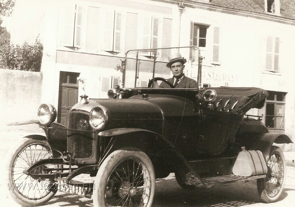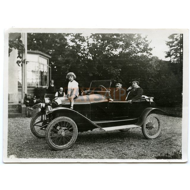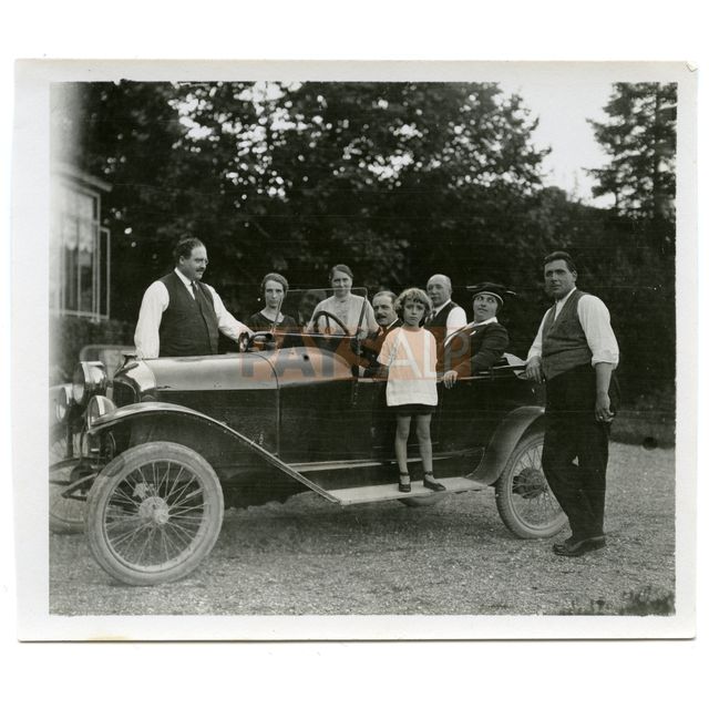 Photo de droite: Description Le docteur Adrien BONNEFOY (habitant Fillinges) au volant de sa voiture (de marque Le Zèbre ou La Licorne ?), sa femme Augusta (née FOUILLOUX) derrière lui. Leur neveu, Albert FOUILLOUX, est debout sur le marche-pied. Ils sont probablement dans la cour de la maison de leurs amis (ou famille ?) à La Croix-de-Rozon, hameau de Bardonnex, près de Genève en Suisse. Ils sont en compagnie d'amis ou de membres de leur famille. Période : 20ème Témoins et/ou personnes à l'image : Adrien BONNEFOY, Augusta BONNEFOY (née FOUILLOUX), Albert FOUILLOUX Credit: Fonds Cheneval-Bonnefoy, Maison de la Mémoire - Ecomusée PAYSALP